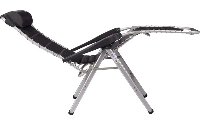 Entspannende Relaxliege von außergewöhnlicher Qualität mit Kissen inklusive. Die Liege bietet absoluten Komfort, der Stoff wird durch eine elastische Schnur an der Struktur befestigt. Die Rückenlehne und die Armlehnen sind ergonomisch. Die Relaxliege kann in unendlichen Positionen eingestellt werden. Die H-eloxierte Struktur sorgt für mehr Stabilität und Festigkeit.