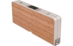 Aluminium-Campingtisch mit epoxy-beschichtetem Gestell und Aluminiumumrandung.